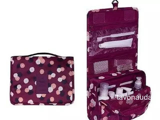 * Yra pakankamai kišenių,kad sutalpinti šampūną, kūno prausiklius, makiažą, akių šešėlius, šepetėlius ir kitus vonios reikmenis.